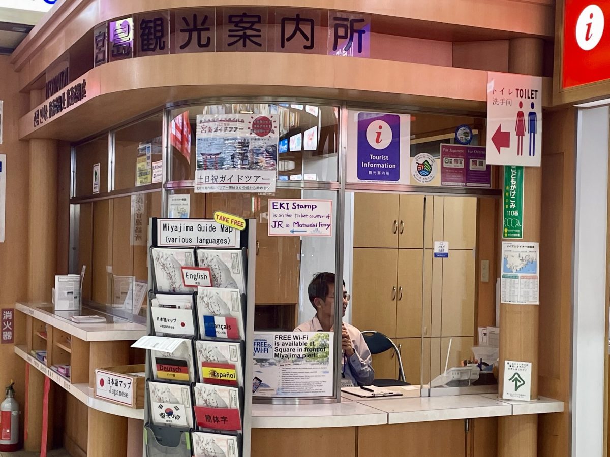 (島内側のフェリー乗り場にある宮島桟橋観光案内所)