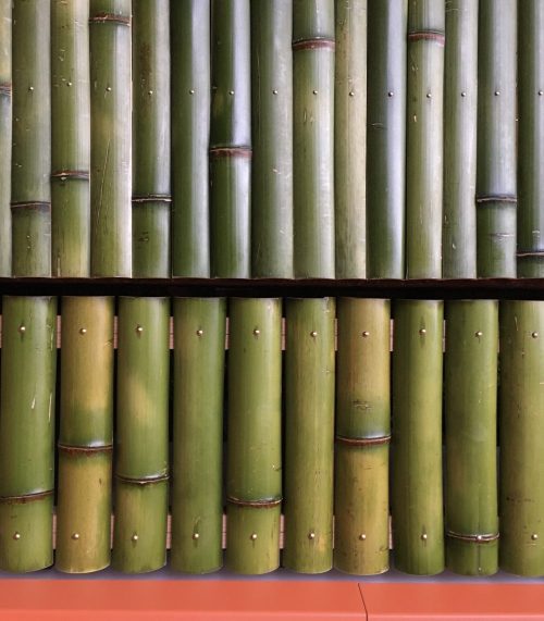 新年を迎えるころ、神様が通る門の外の柵が鮮やかな青竹に替わります。