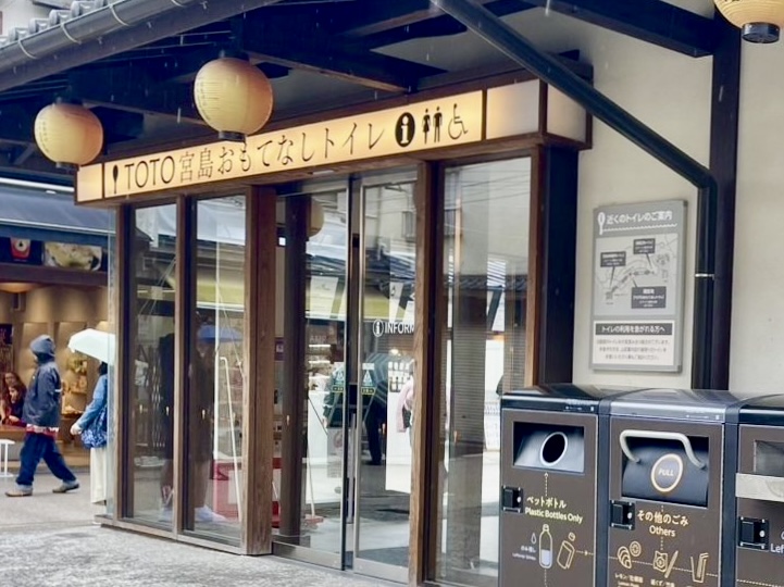 フェリー乗り場の宮島口旅客ターミナルと宮島桟橋、表参道商店街の中間地点にある「TOTO宮島おもてなしトイレ」は3か所ともきれいで、トイレの個数が多く多機能トイレも備わって快適に利用できるのでおすすめです。